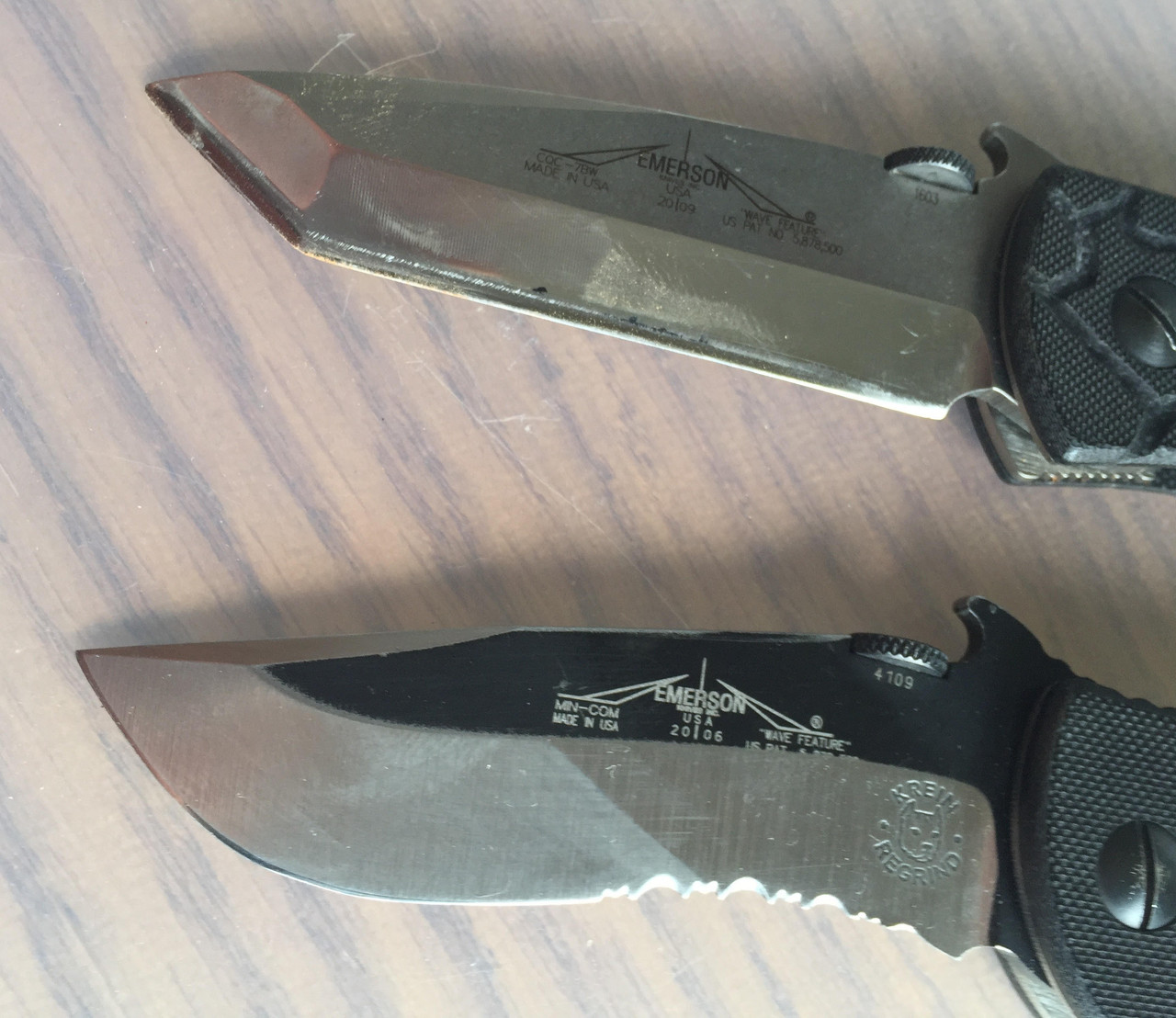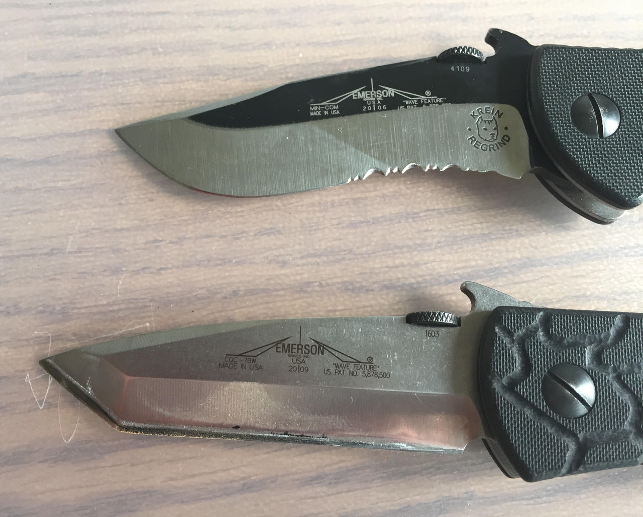 These knives featured full convex grinds, zero edges, and sharpening angles around 20 degrees inclusive, and the alloy contributed to their high wear resistance and edge retention.